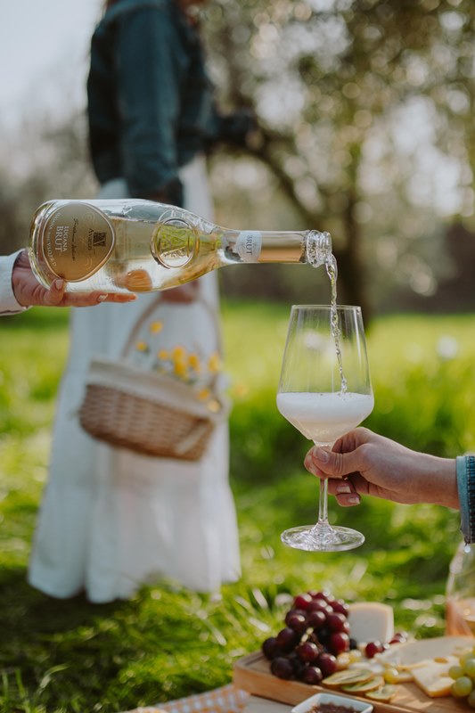 Colore: Bianco paglierino con riflessi verdolino, perlage fine e persistente.